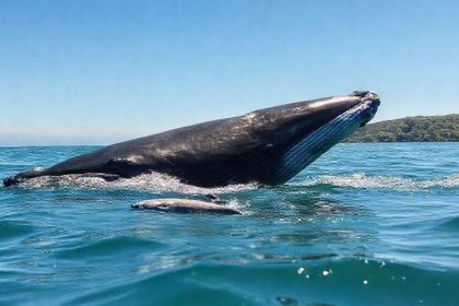 Uma baleia-jubarte foi avistada na Serra, Grande Vitória, com um filhote recém-nascido,…